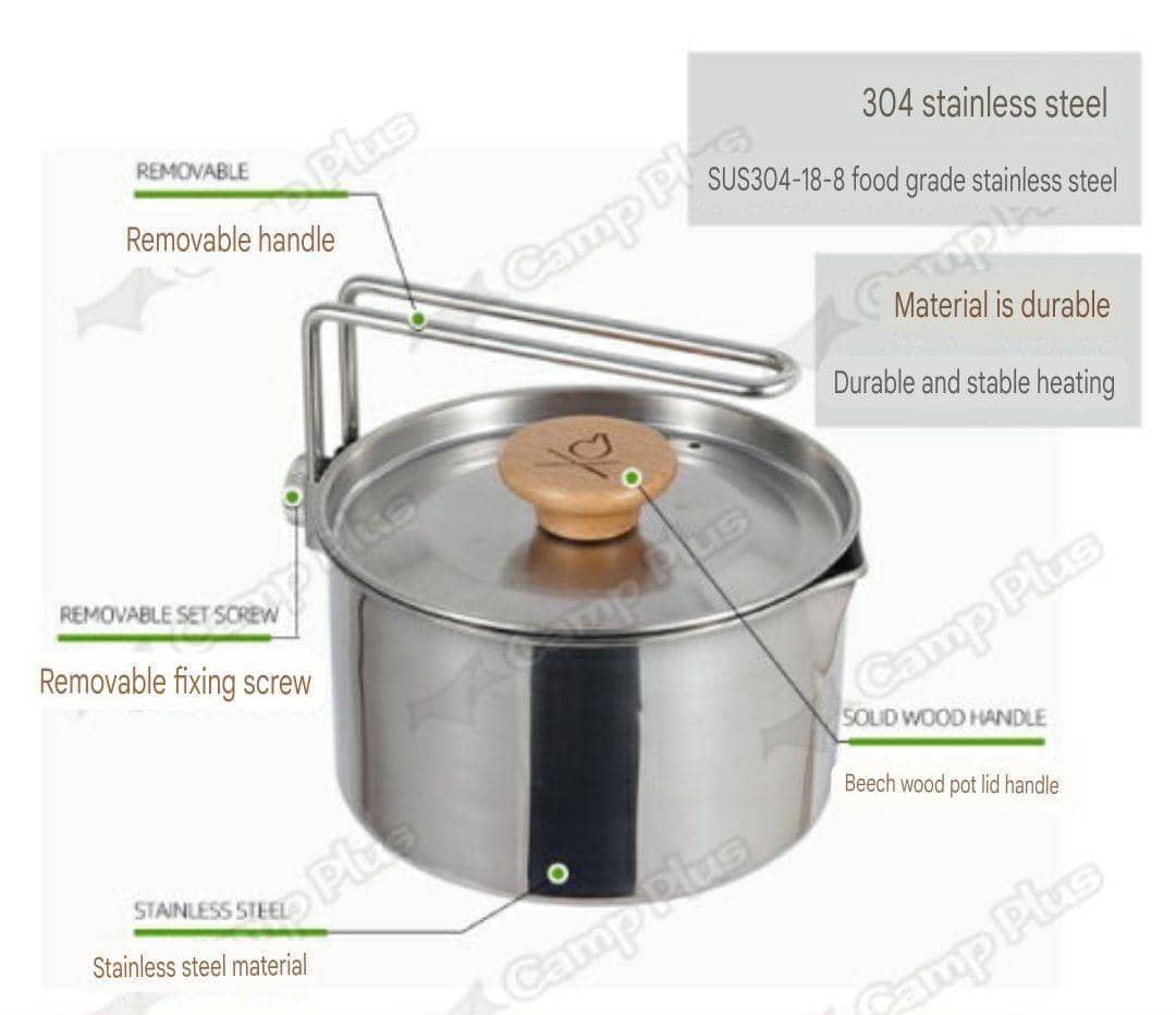 304 stainless steel outdoor kettle 1L portable coffee pot dual-purpose pot camping pot teapot boiling kettle soup pot pot camping picnic outdoor
