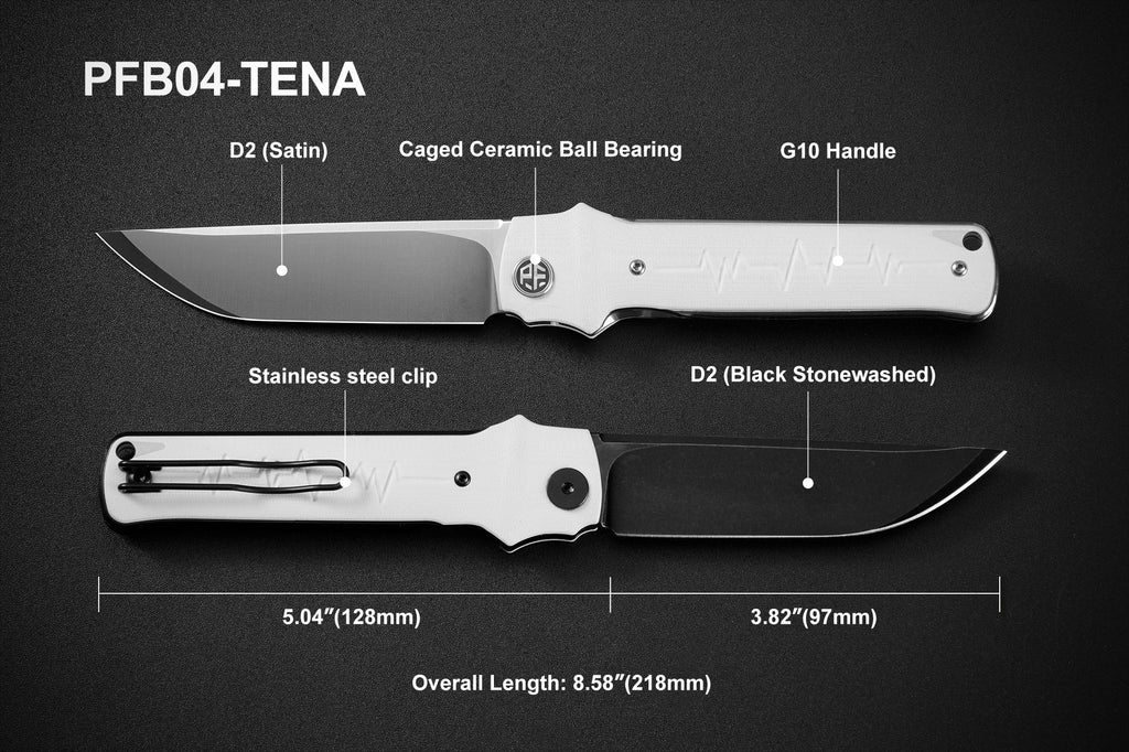 Petrified Fish PFB04 Tena 3.82″ D2 Steel Blade G10 Handle Front Flipper Liner lock