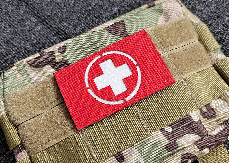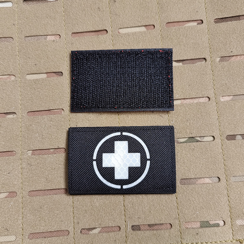 Red Cross Badge Medical First Aid Patch IR Reflective Laser Engraving Embroidery Cloth Patch Luminous Velcro Double-sided